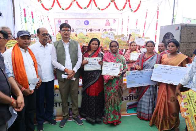 आयोजित शिविर में वित्त मंत्री श्री ओ.पी.चौधरी ने आज प्रधानमंत्री आवास ग्रामीण योजनान्तर्गत पूर्ण आवासों के 11 हितग्राहियों को आवास पूर्णता प्रमाण-पत्र सौंपा। इसी तरह खाद्य विभाग द्वारा 14 हितग्राहियों को राशन कार्ड का वितरण किया गया। मत्स्य विभाग द्वारा दो हितग्राही को आईस बॉक्स एवं दो को मत्स्य जाल वितरण कया गया। कृषि विभाग द्वारा 5 हितग्राहियों को मृदा स्वास्थ्य कार्ड योजना से लाभान्वित किया गया। एक हितग्राही को अनुदान में पाईप वितरण तथा एक हितग्राही को शाकम्भरी योजना अंतर्गत डीजल पंप प्रदान किया गया। उद्यान विभाग द्वारा 6 हितग्राहियों को पौध वितरण, प्रधानमंत्री आवास ग्रामीण योजनान्तर्गत तुरंगा एवं मचिदा के 10 हितग्राहियों को नये स्वीकृत आवास प्रमाण-पत्र तथा 10 हितग्राहियों को प्रथम किस्त का प्रमाण-पत्र प्रदान किया गया। राजस्व विभाग द्वारा 4 हितग्राहियों को ऋण पुस्तिका का वितरण किया गया। साथ ही 5 हितग्राहियों का बी-1 त्रुटि सुधार किया गया। समग्र शिक्षा द्वारा 4 विद्यार्थियों को सहायक सामग्री प्रदाय किया गया। महिला एवं बाल विकास विभाग द्वारा 5 गर्भवती महिलाओं की गोद भराई एवं 5 बच्चों का अन्न प्रासन्न कराया गया।
