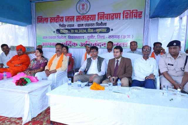रायगढ़ । वित्त मंत्री ओ.पी.चौधरी के मुख्य आतिथ्य में आज पुसौर विकासखण्ड के ग्राम-त्रिभौना में जिला स्तरीय जनसमस्या निवारण शिविर का आयोजन किया गया। वित्त मंत्री श्री चौधरी ने कहा कि शासन के निर्देशानुसार जनसामान्य के समस्याओं के त्वरित निराकरण हेतु गांव में ही जिला स्तरीय जन समस्या निवारण शिविर का आयोजन किया जा रहा है। उन्होंने कहा कि अधिकारी जनसामान्य की समस्याओं को सुनकर त्वरित निराकरण सुनिश्चित करें। ताकि जनसामान्य को शिविर का लाभ मिले। वित्त मंत्री श्री चौधरी ने कहा कि त्रिभौना में 29 लाख रुपये की लागत से बनने वाले महतारी सदन के लिए शासन से स्वीकृति प्राप्त हुई है। जिसका संचालन महिलाओं द्वारा किया जाएगा। इस दौरान उन्होंने स्कूल के मांग पर अतिरिक्त कक्ष निर्माण के लिए 10 लाख रुपये की घोषणा की।