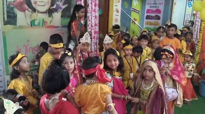 विविध प्रतियोगिता का आयोजन – किण्डर वैली स्कूल में श्रीकृष्ण जन्माष्टमी महापर्व की खुशी में खास बच्चों के लिए क्यूट श्री कृष्ण – श्री राधे, ग्रुप गीत डांस, दहा मटका फोड़ सहित मनभावन प्रतियोगिताएं आयोजित की गई। जिसमें खूब परिधान में सजे और हाथों में बाँसुरी लिए मासूम बच्चों ने भी अपनी प्रतिभा की शानदार प्रस्तुति दी उनकी मनोहारी छवि और प्रस्तुति देखकर उपस्थिति सभी अभिभावकगण भी अत्यंत ही हर्षित हो गए व स्कूल प्रबंधन के इस आयोजन की अभिभावकों ने सराहना कर सभी स्टॉफ सदस्यों को शुभकामनाएं व बधाई दी।