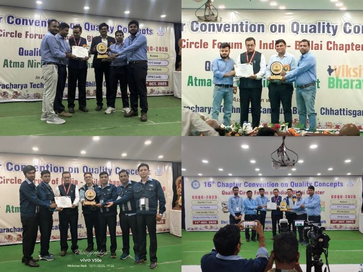 भिलाई स्थित शंकराचार्य विश्वविद्यालय में 10 से 12 अक्टूबर तक त्रिदिवसीय 16वां चैप्टर कन्वेंशन आयोजित किया गया। यह आयोजन “आत्मनिर्भर विकसित भारत के लिए गुणवत्ता अवधारणाएँ” विषय पर केंद्रित था। इस कार्यक्रम में चैप्टर स्तर की 237 टीमों ने भाग लेकर अपने संयंत्रों में किए गए नवाचार एवं गुणवत्ता सुधार कार्यों की उत्कृष्ट प्रस्तुतियाँ दीं।